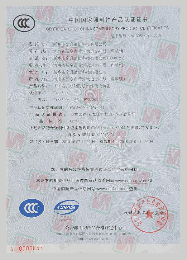 您現(xiàn)在的位置:首頁(yè) > 資質(zhì)榮譽(yù) > 半固定式泡沫滅火裝置