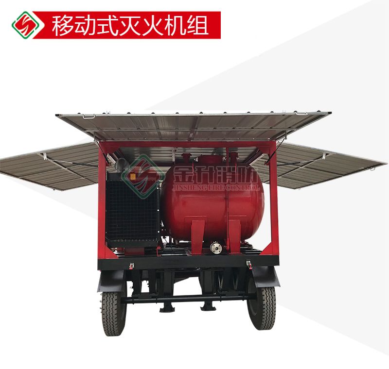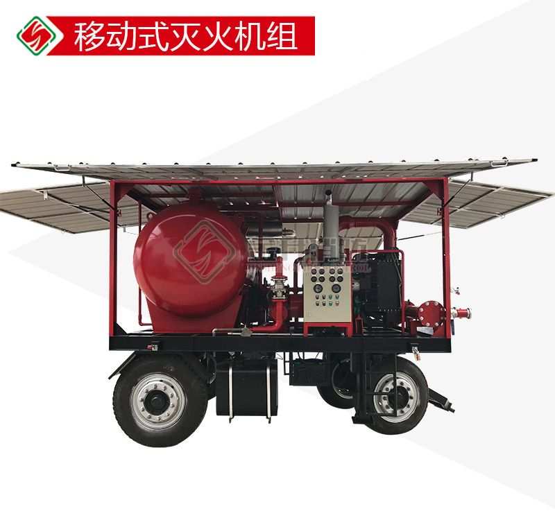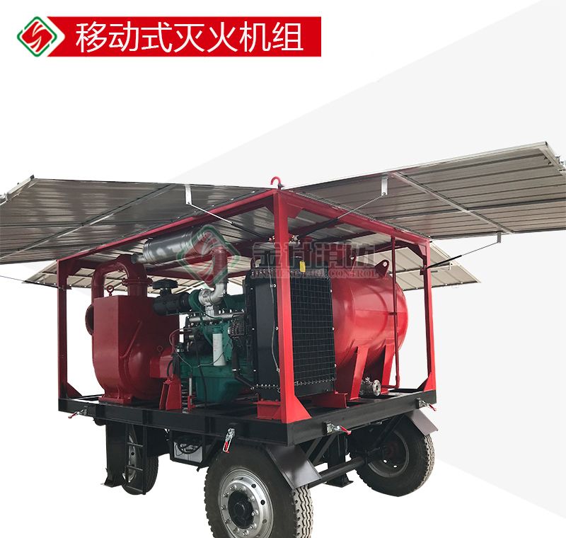 移動滅火機(jī)組有供水系統(tǒng)、供液系統(tǒng)、常壓泡沫液儲罐、控制系統(tǒng)、公共系統(tǒng)等組成。裝置所有動力采用柴油機(jī)驅(qū)動。